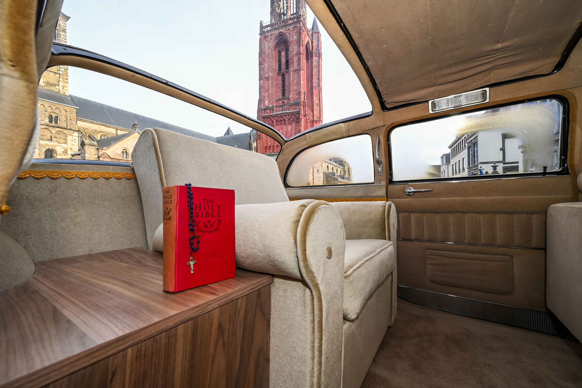De auto stond bijna dertig jaar in een museum in Italië, maar werd vorig jaar door de Maastrichtse verzamelaar en autohandelaar Jaap Braam Ruben gekocht en in oorspronkelijke staat gerestaureerd. Dat wil zeggen bijna oorspronkelijk, want de stoel waarop drie opeenvolgende Pausen zaten is door het Vaticaan eruit gehaald, omdat niemand anders op de stoel van de Paus mag zitten. In de auto vind je nu een replica van de Pauselijke zetel.
