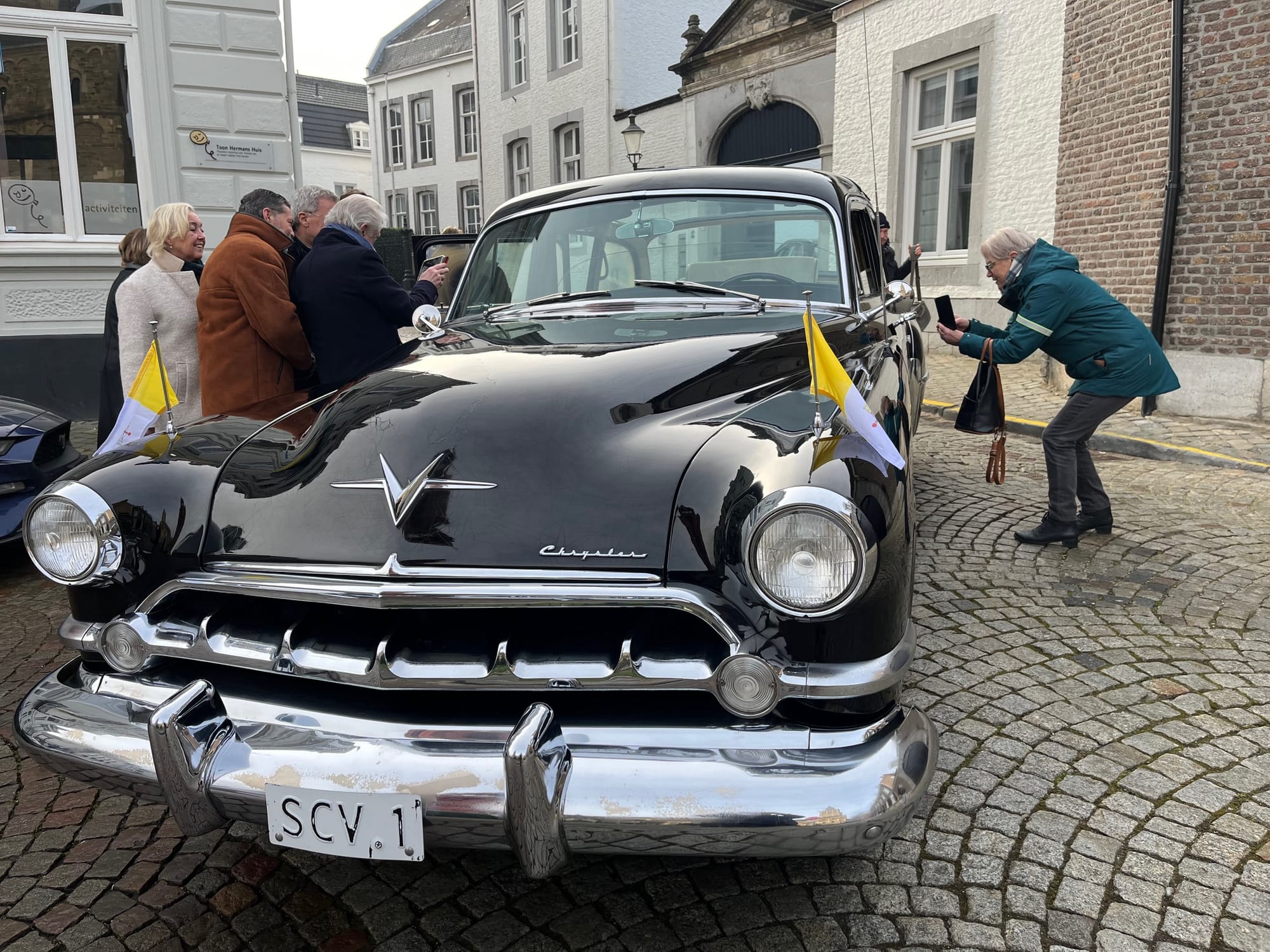 Een bijzondere auto was zondag te zien in Maastricht. De Pausmobiel uit de jaren vijftig, toen Paus Pius XII nog rondreed in een Chrysler is in Maastricht gerestaureerd en is komende week op een grote autoshow in Parijs te zien.