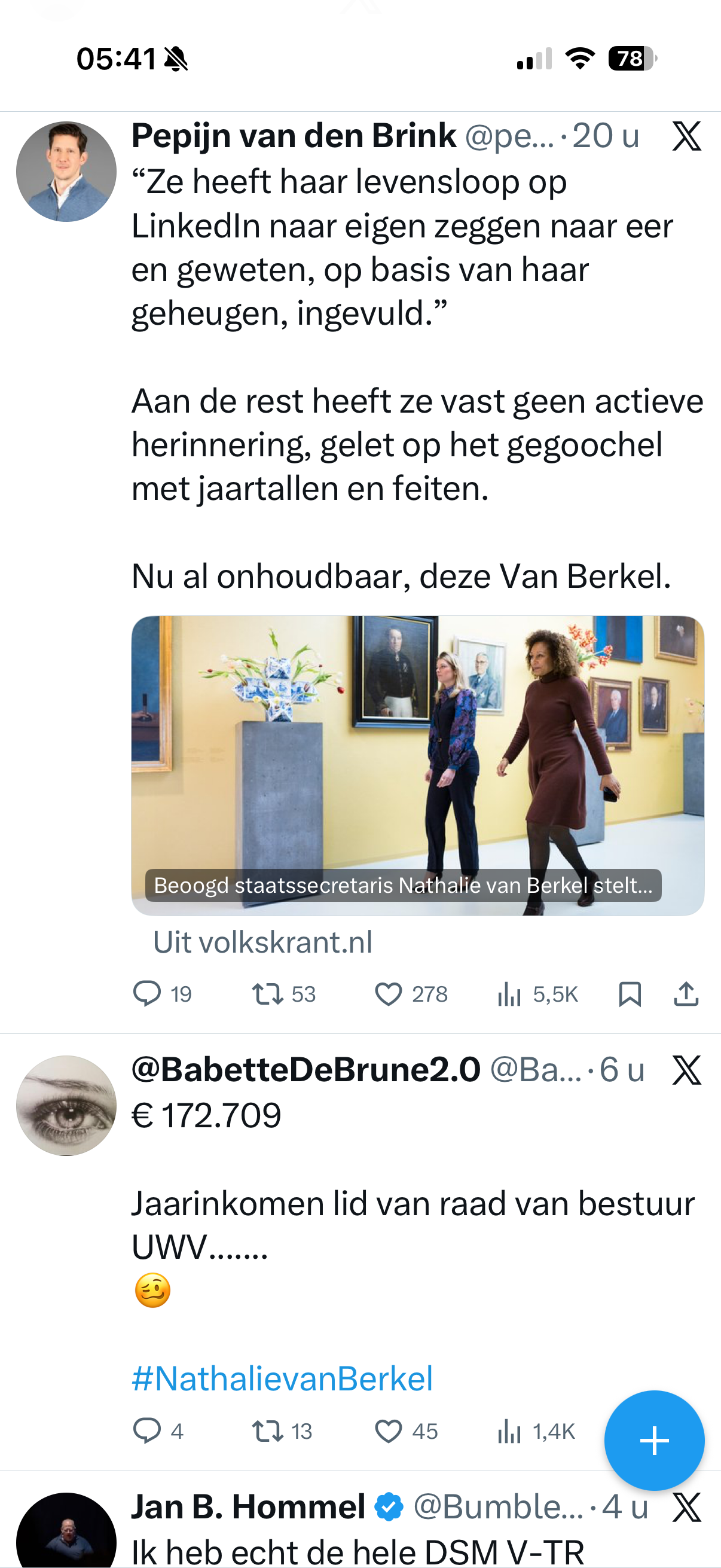 Jetten kan D66 nog meer schade berokkenen door Van Berkel nog een tijdje in de tweede kamer te laten zitten. Zachte heelmeesters maken stinkende wonden. Als Van Berkel in de kamer blijft zitten, schaadt dat het toch al belabberde aanzien van de politiek. De oppositiepartijen zullen er alles aan doen om aangeschoten wild Van Berkel in de publiciteit te houden tot zeker 18 maart. Haar CV was net zo metaforisch als de tien nieuwe steden die Jetten zelf wilde gaan bouwen om de woningnood op te lossen, zo kunnen we al lezen.