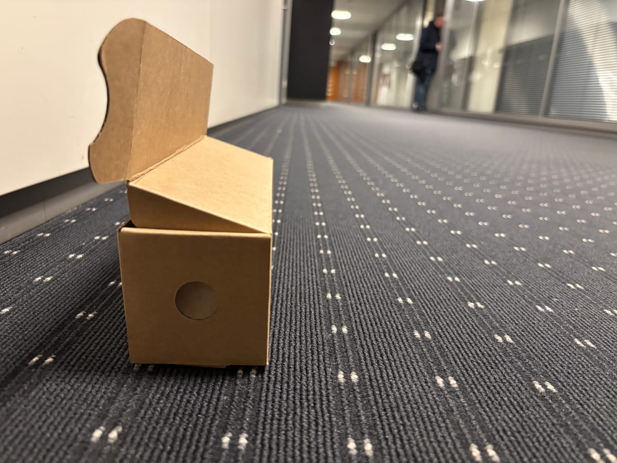 Het fotograferen cq het op video vastleggen van de betreffende muis is weliswaar deels gelukt, maar de kwaliteit van de opnames cq de herkenbaarheid van de muis is niet heel erg goed. De muis zit bij de poot van de tafel.